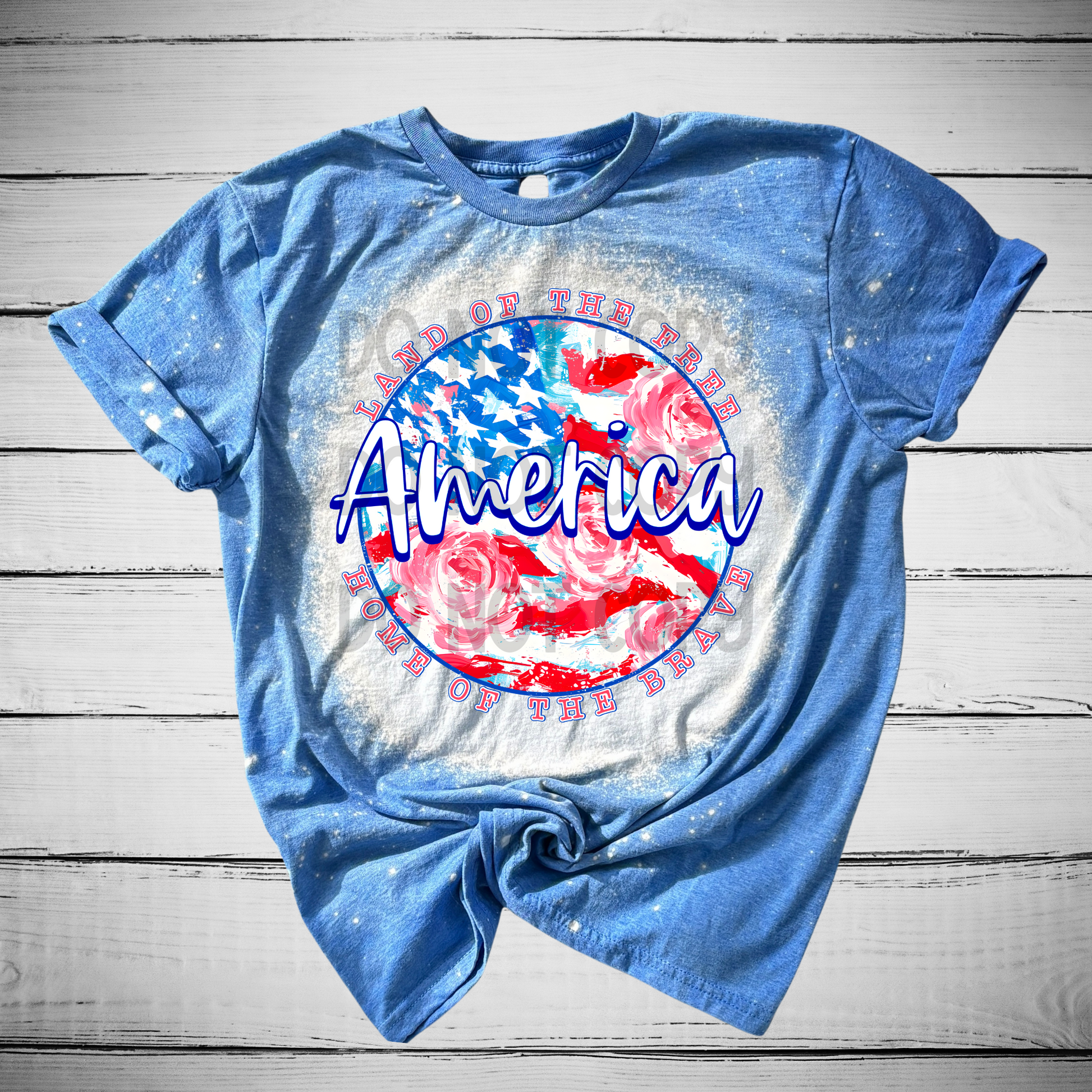 America Land of the Free Home of the Brave Bleached Distressed Tee Shirt
