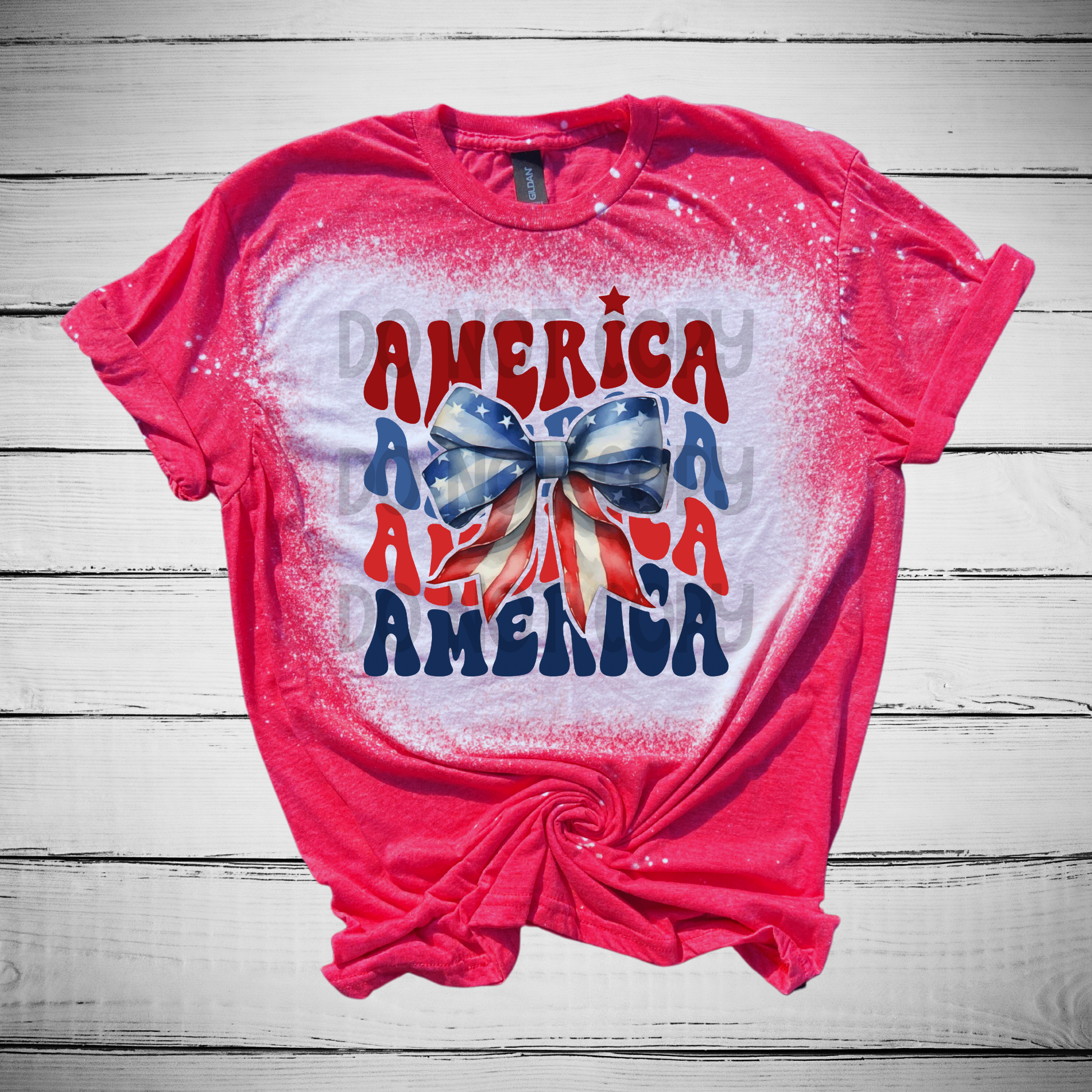 America Stacked Coquette Bow Bleached Distressed Tee Shirt