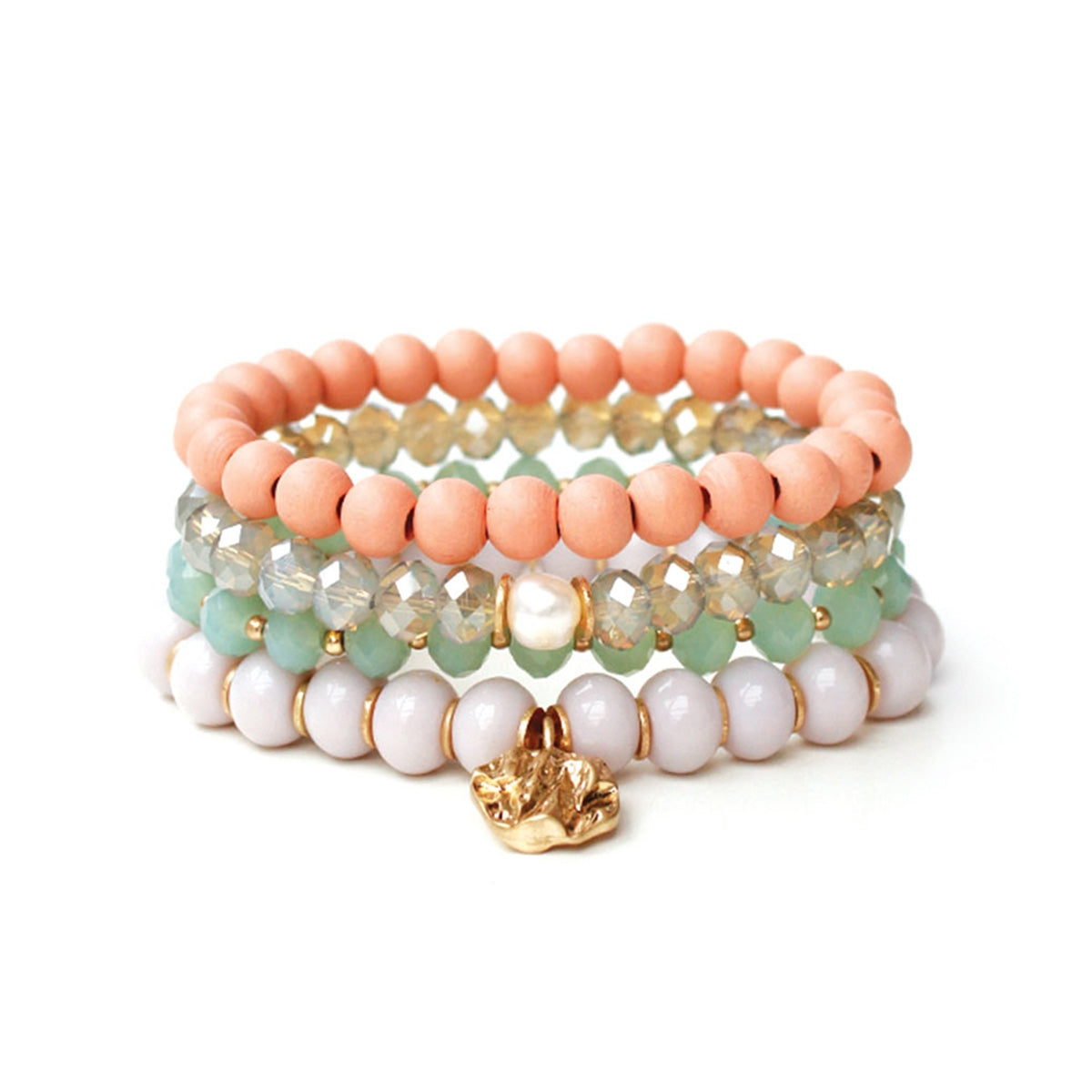 This bracelet stack will quickly become your go-to accessory, it features an eclectic set of beaded bracelets that will perfectly pair with your favorite outfits.