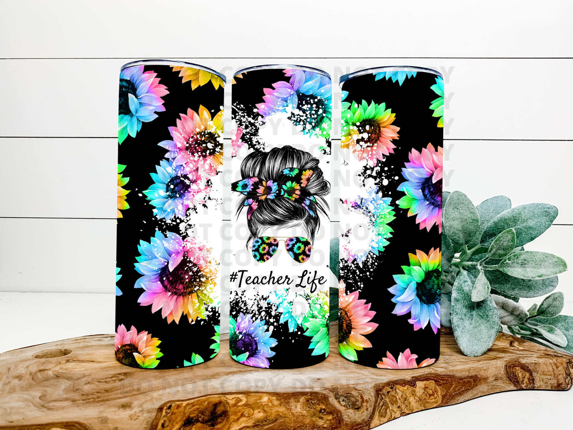 Teacher Life Rainbow Sunflower Stainless Steel Tumbler