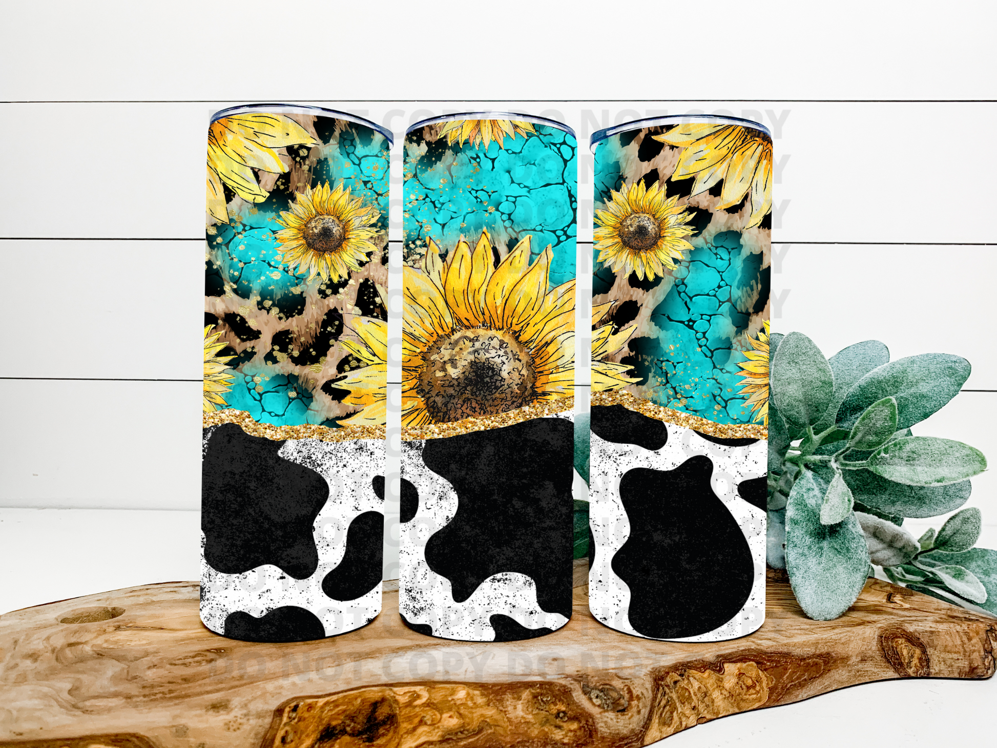 Cow Print With Leopard, Turquoise & Sunflowers Tumbler