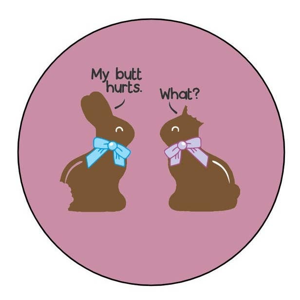 Exchangeable Badge Button Easter Bunny Chocolate Butt Hurts