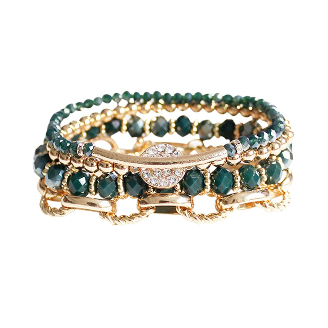 This bracelet stack will quickly become your go-to accessory, it features a classy set of beaded bracelets with rhinestone accents that will perfectly pair with your favorite outfits.
