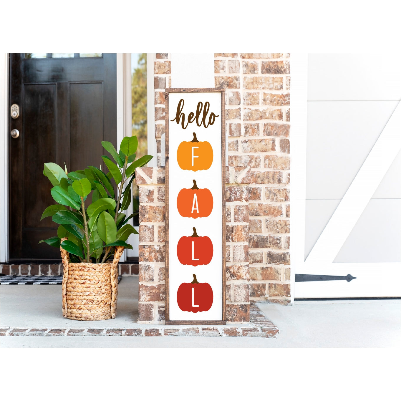 Hello Fall Pumpkins Porch Sign - Red/Orange