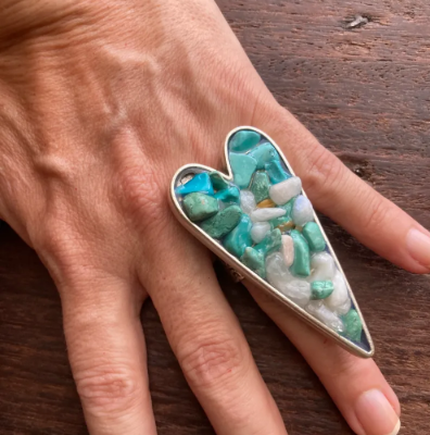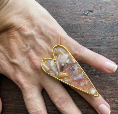 Large Heart of Stones Irregular Souls Hart's Rings. Choose from these limited edition adjustable rings. Plated on a copper/zinc base and filled with healing crystals to soothe that heart of stone. Fast shipping!