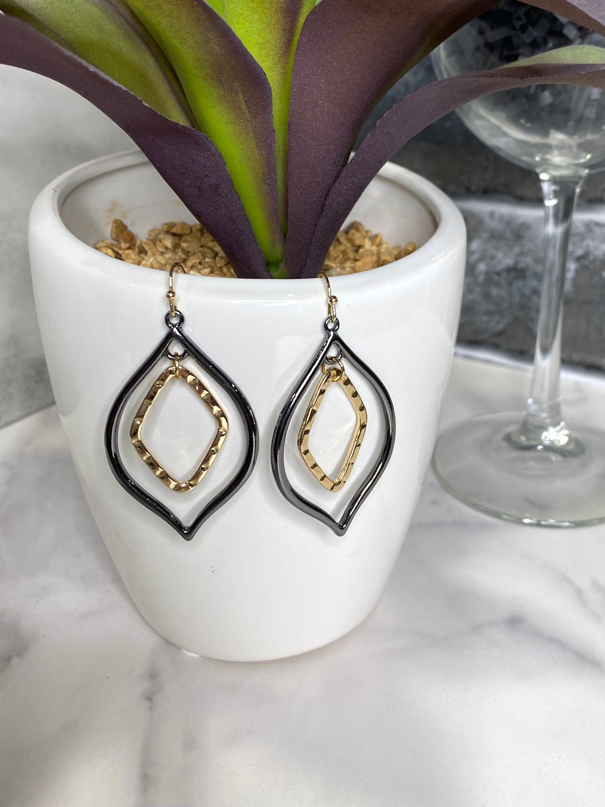 Mixed Metal Pointed Tear Drop Dangle Earrings
