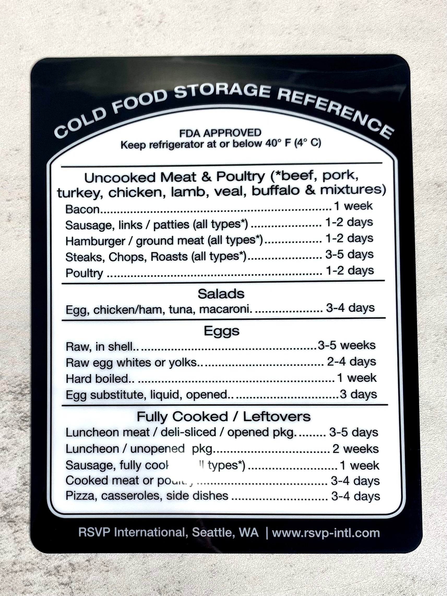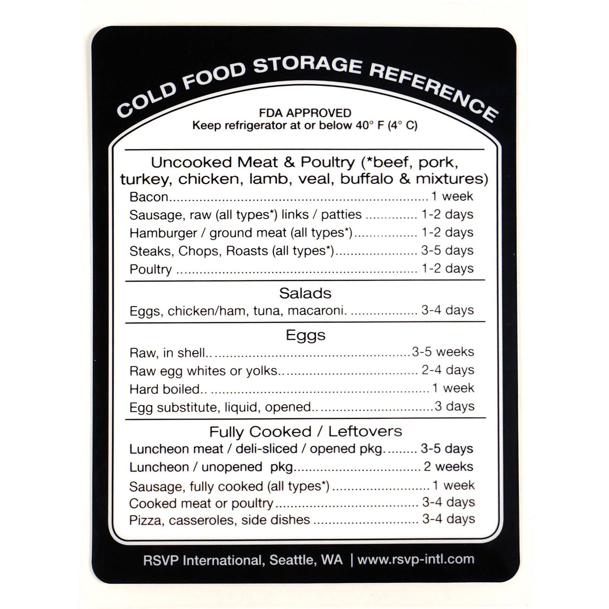 Reference this label to know if your refrigerator food is FDA approved safe to eat whether it's meat, dairy, leftovers and more.