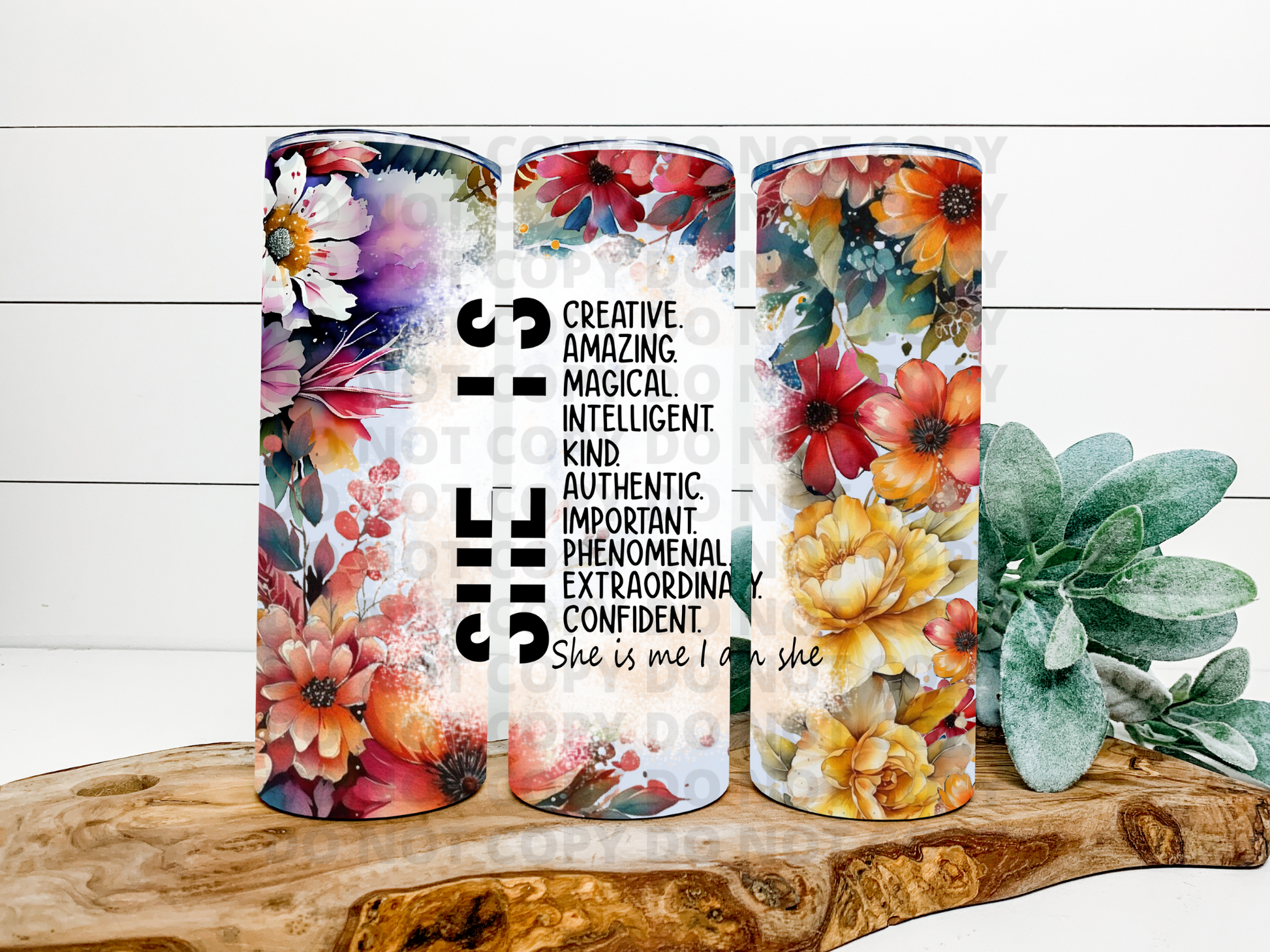20 oz double walled insulated sublimation tumbler. Comes with lid, rubber bottom and metal + plastic straw. Keeps ice all day and drinks hot for HOURS!