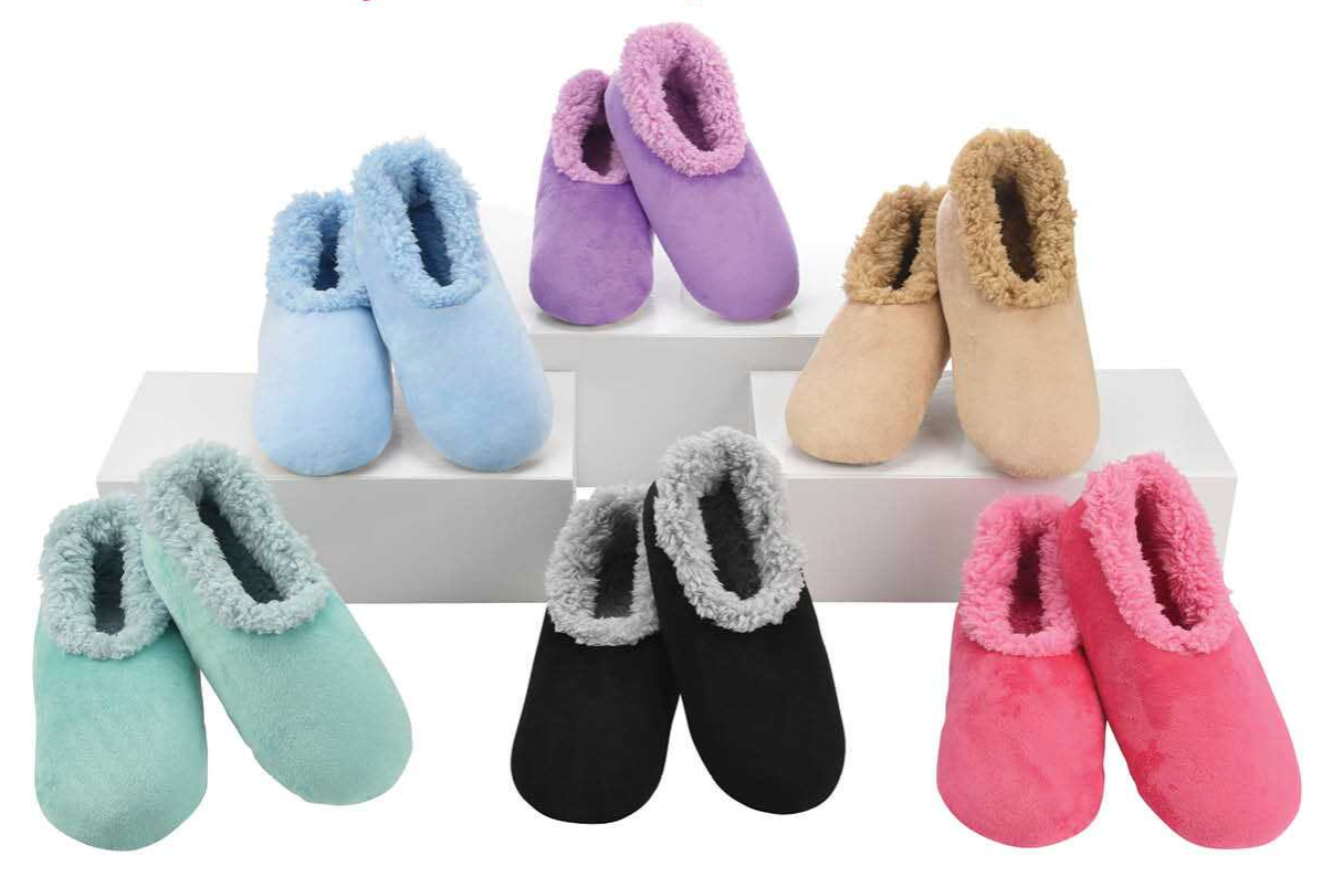 - SNOOZIES SLIPPERS - Unique exterior in great colors and then lined with a soft Sherpa fleece inside. Making these house slippers the perfect gifts for women.
