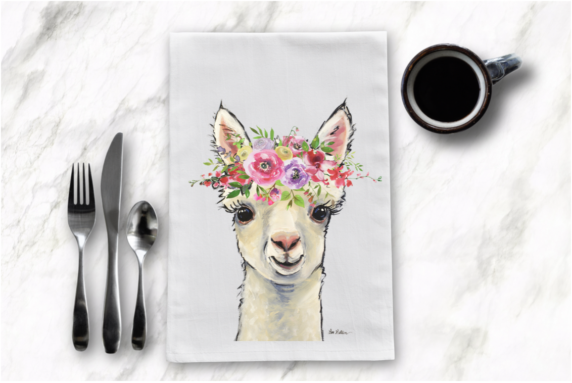Spring Flower Alpaca Tea Towel, Farmhouse Towel Decor