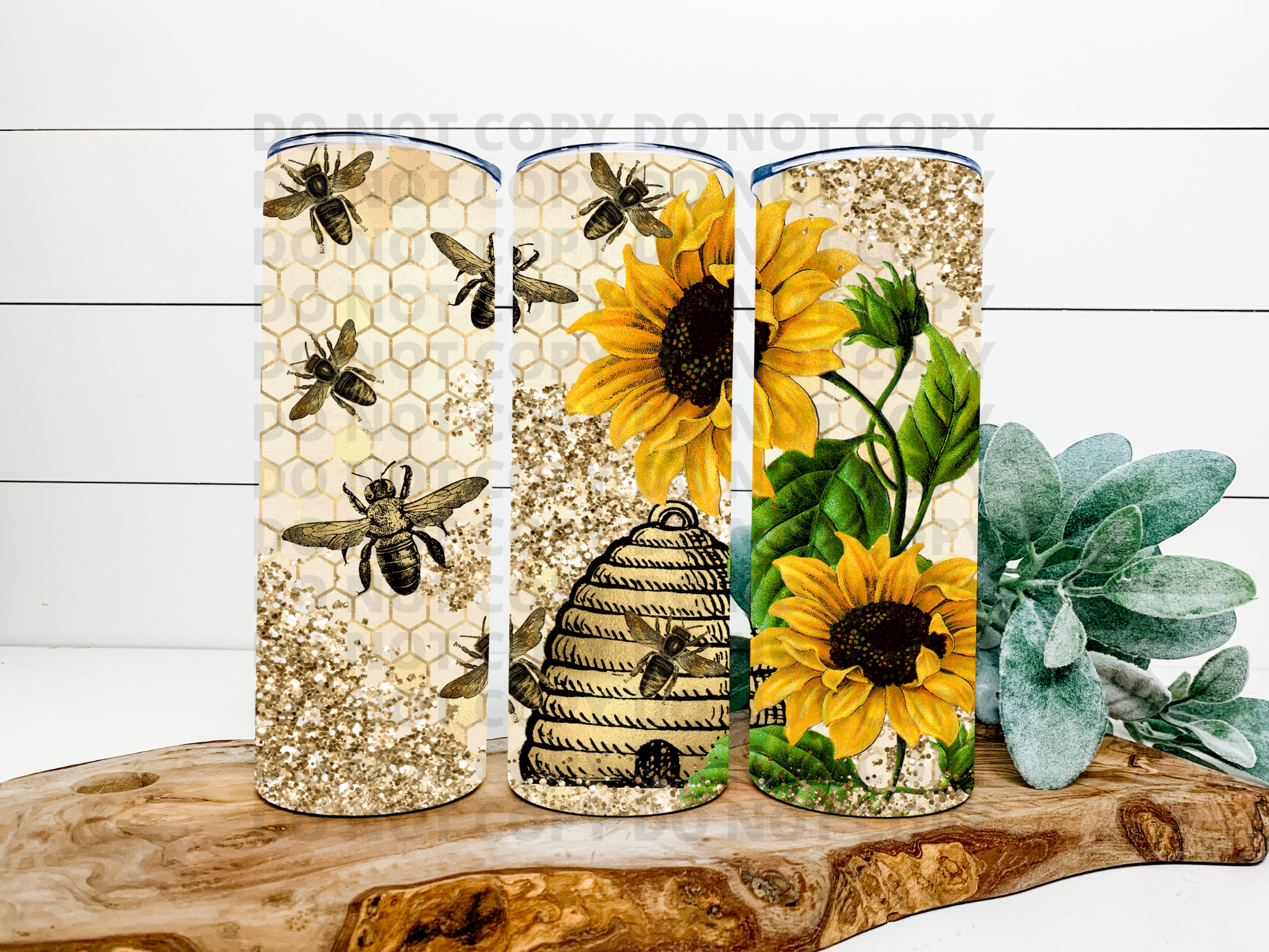 Bee Hive Sunflower Glitter Stainless Steel Tumbler