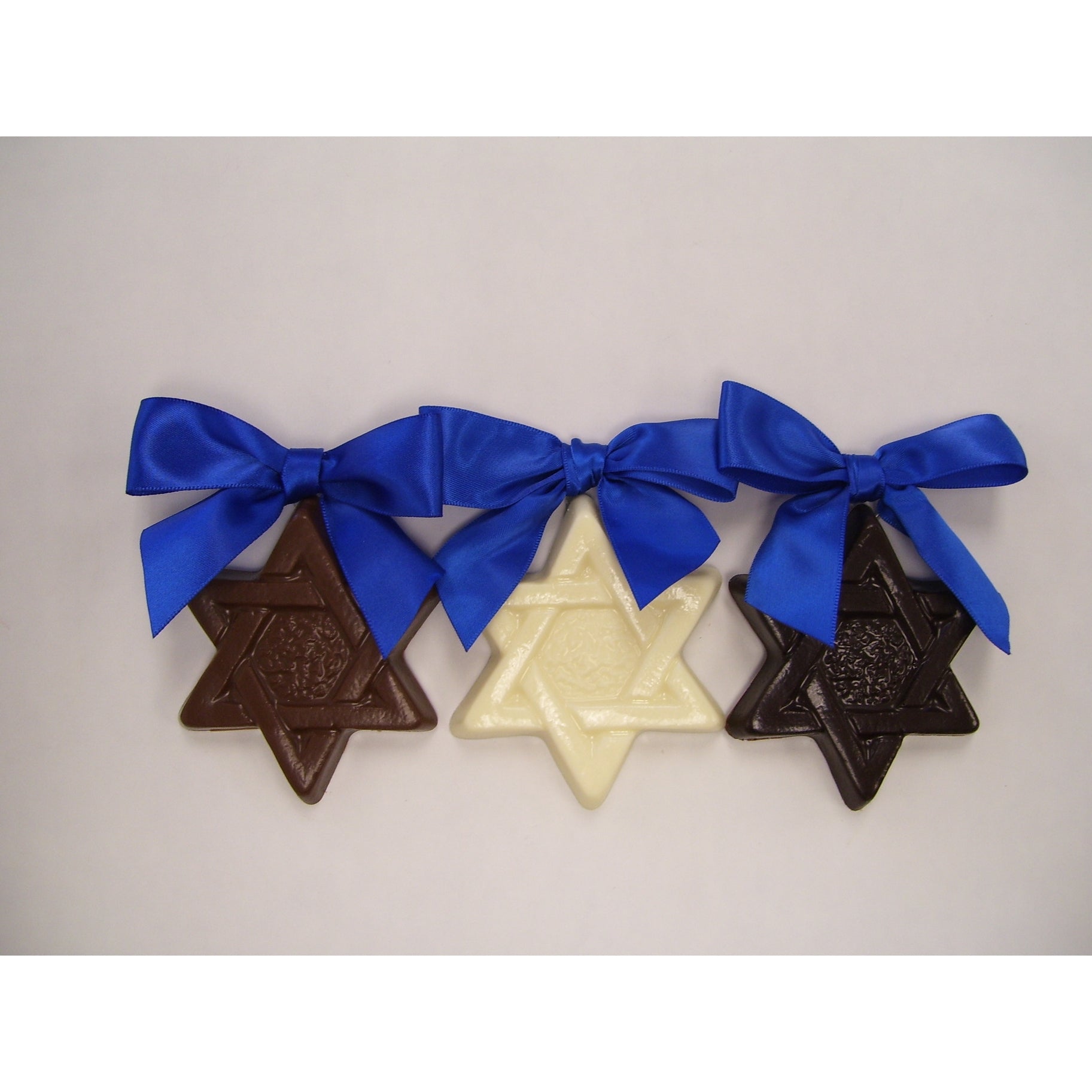 Solid Chocolate Star of David. Available in Milk, dark or White Chocolate