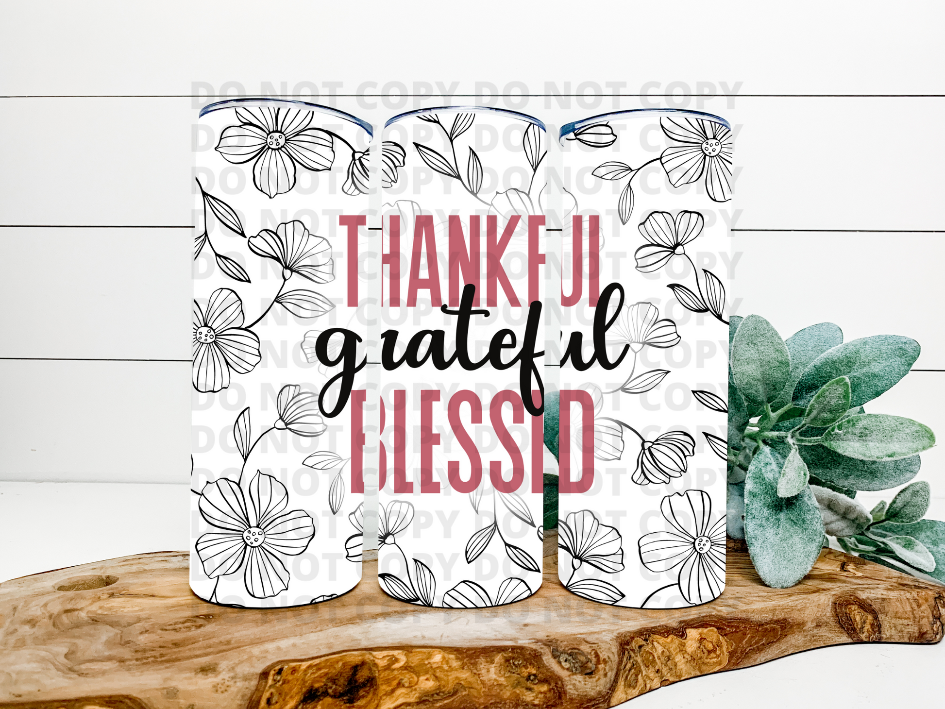 Thankful Grateful Blessed Floral Stainless Steel Tumbler