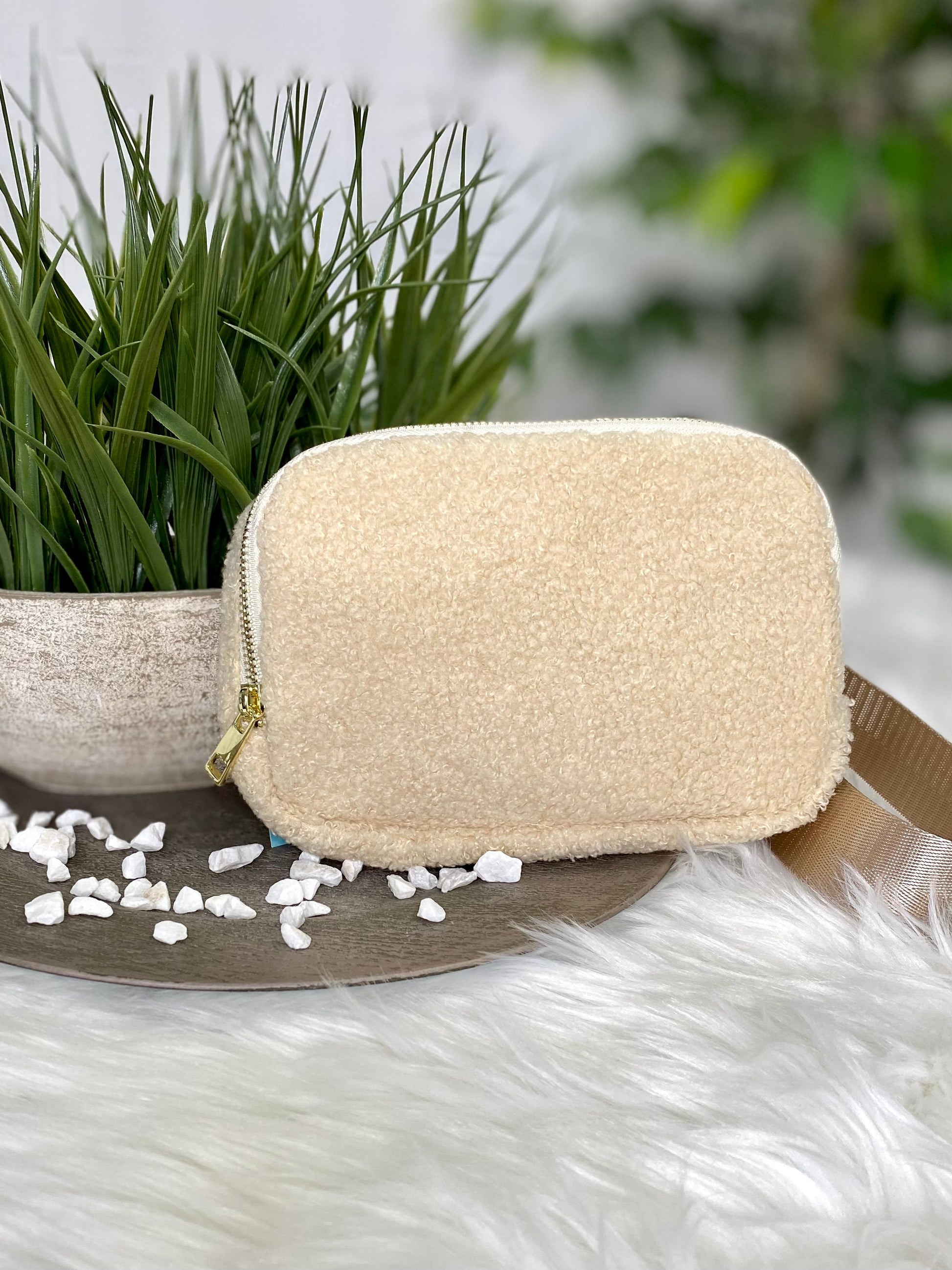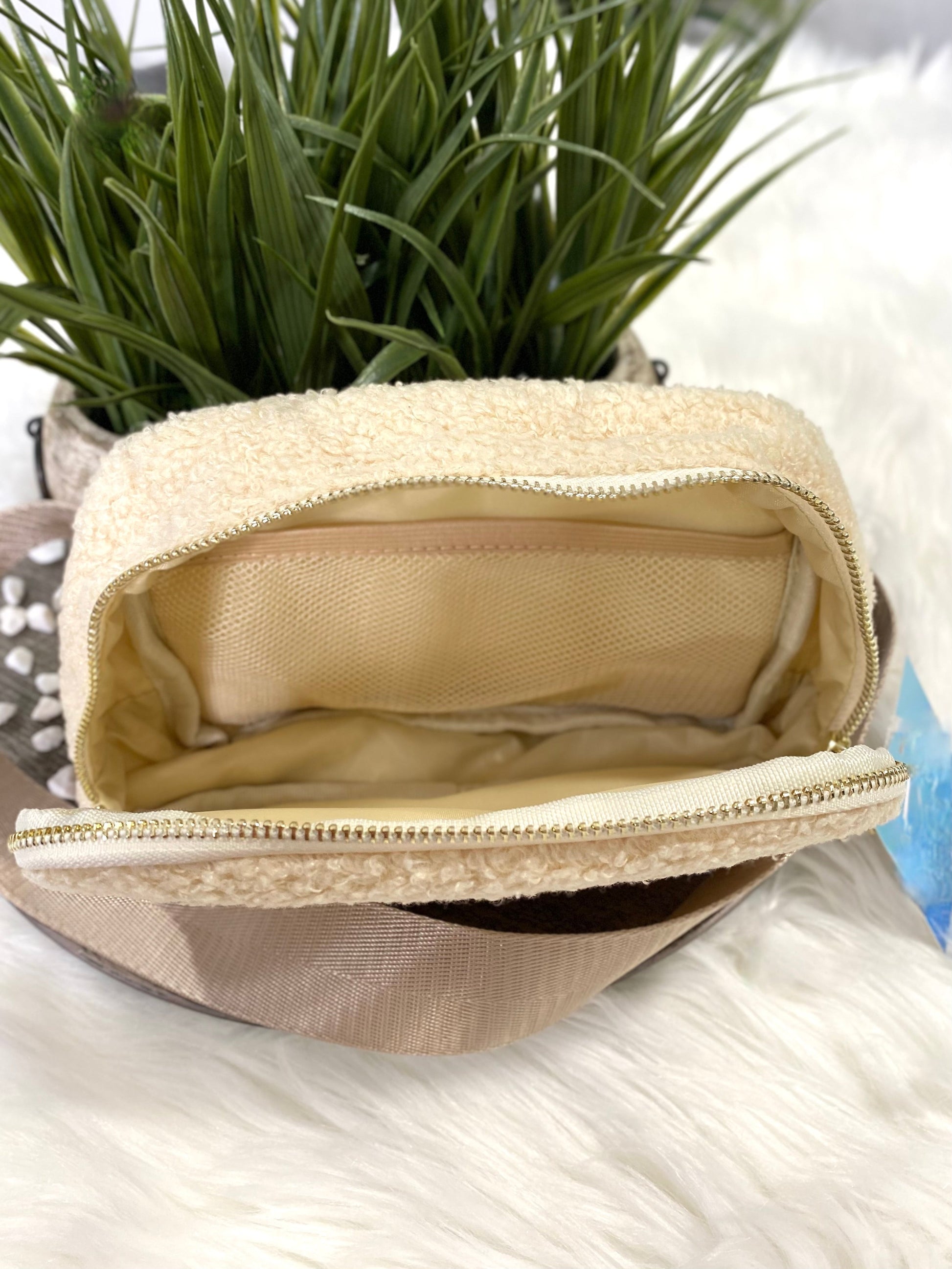 Brand new item! Waist packs are all the rage! These bags are perfect for everyday and so stylish. Made of a durable sherpa material and accented with gold zippers with an interior pocket. The waist belt is soft and adjustable.