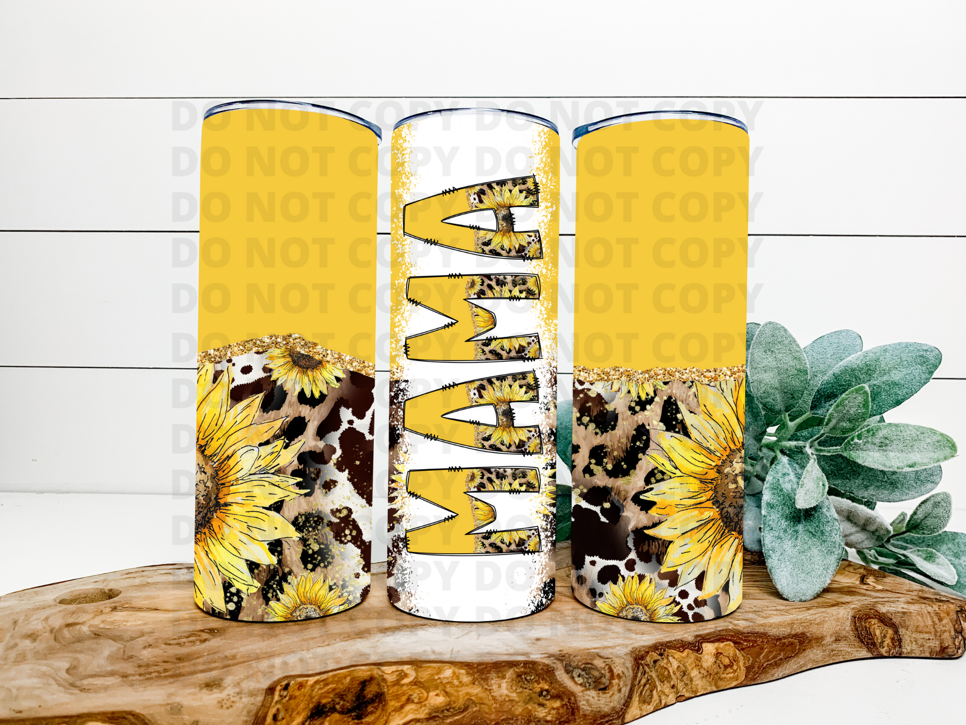 Yellow Sunflower Cheetah Cow Mama Tumbler